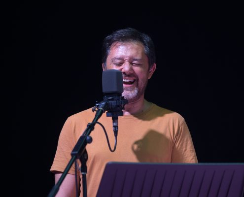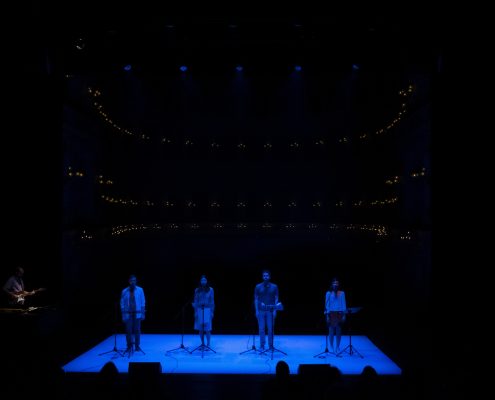 Un viaggio sonoro immersivo che evoca brevi frammenti di vita, generando mondi e relazioni. Uno sguardo affascinante sull’effimero dell’essere umano. Un concerto per voci e musica eseguita dal vivo: una riflessione sul potere immaginifico del suono e della parola.