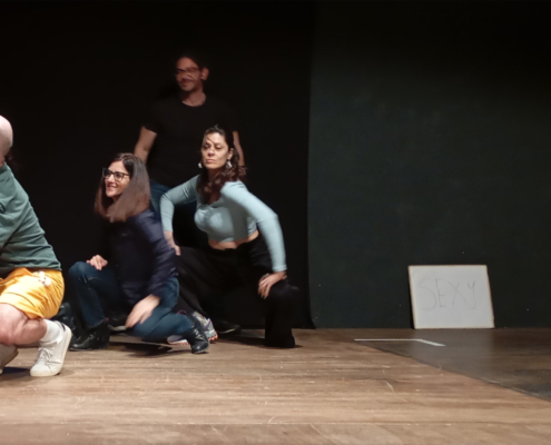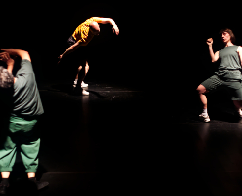 Il pubblico entra attivamente a far parte della performance attraverso semplici pratiche di interazione: attribuire delle parole-chiave, spostarsi nello spazio per cambiare punto di vista, copiare dei movimenti. La danza si mette a disposizione, in continua tensione tra l’aderire alle premesse coreografiche e il farsi contaminare da input esterni: non la si “possiede”, ma è piuttosto il frutto di un processo di confronto. A mano a mano, le parole si moltiplicano e si sedimentano, nominando la danza, la “spostano” e aprono una finestra sull’immaginario sotteso alle scritture corporee dei performer.