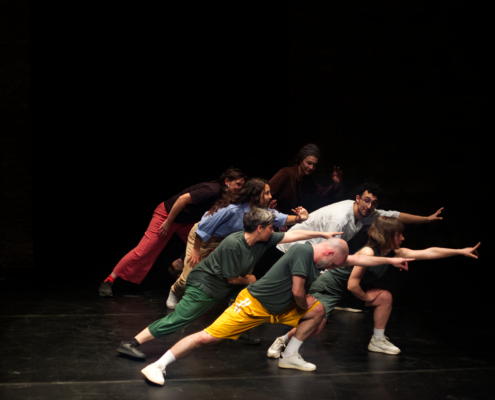 Boomerang è un formato ibrido tra spettacolo e lecture partecipativa che rivela la forza della danza nel suo costruirsi. Il pubblico viene accolto da quattro performer in uno spazio illuminato e giocoso, ricevendo un foglio di istruzioni per partecipare.