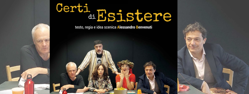 ‘Certi di esistere’ la storia di cinque attori salvati e vissuti da sempre all’ombra di un autore padre padrone che gli ha dato la linfa affinché i destini nati sotto cattive stelle di ognuno di loro si ammantassero delle vesti dorate del successo grazie al suo protettivo talento. Imprevedibilmente tutto questo sembra ad un tratto non avere più senso. Trent’anni insieme per ritrovarsi tra le mani, dono dell’autore un testo insulso, farraginoso, brutto in maniera inspiegabile, un boccone più che amaro intriso di puro veleno.