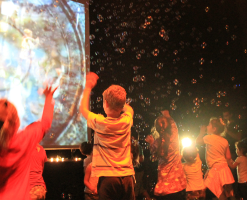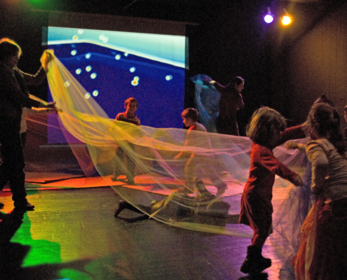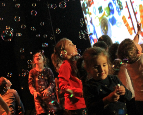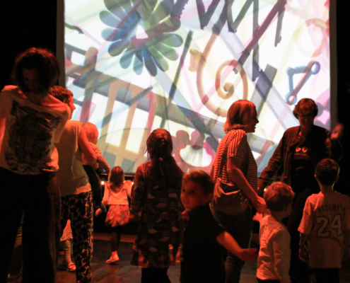 Una dance hall per bambini e genitori, con video- proiezioni e selezione musicale a cura di Magazzino dei Semi, preceduta da un laboratorio preparatorio al movimento e alla libera espressione corporea tenuto dalla danzatrice e coreografa Daria Greco.