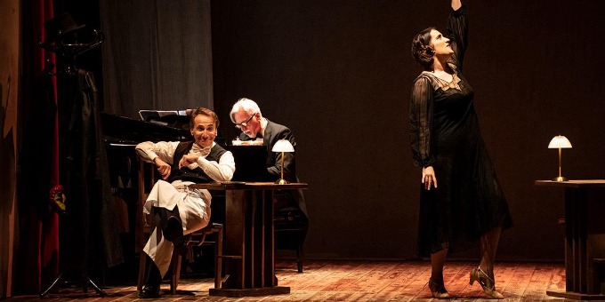 Nello spettacolo, come scena elettiva di queste disparate protagoniste – ma anche di altri celebri esponenti dello spirito di Weimar, drammaturghi, giornalisti, cabarettisti non meno che maghi – è stato scelto uno dei caffè più celebri e celebrati della Berlino degli anni Venti, il Romanisches Café, che storicamente rappresentò un luogo di ritrovo intellettuale di carattere internazionale. Il suo capocameriere, Karl – confidente e amico personale di molti dei protagonisti del nostro racconto – accompagna e sostiene con le sue battute DIVA e, allo stesso tempo, ci offe un “dietro le quinte” di quanto ogni giorno animava il palcoscenico della capitale. Se DIVA interpretata da Chiara Bonome è il corpo performativo dello spettacolo, il personaggio Karl di Bruno Maccallini ne è il narratore. E il maestro di cerimonie. Mutatis mutandis, una sorta di Ridolfo della goldoniana Bottega del caffè. Non a caso, performance e racconto si svolgono in un caffè, luogo di transiti senza altra cittadinanza che non sia quella dispensata dalle arti e dalla cultura, dove l’impermanenza diventa “stato vitale”. Reduci dal disastro comune della grande guerra, profughi dalle rivoluzioni che avevano dato lo scossone finale agli imperi, rifugiati politici, viaggiatori curiosi del nuovo o inviati speciali, per tutti Berlino era sede di passaggi e di incontri fra i più significativi del Novecento. A interpretare questo particolarissimo mood, rimane fondamentale anche la parte musicale, affidata al pianista Pino Cangialosi, spaziando fra popolare e avanguardia, creando relazioni stimolanti con le parole della poesia come del divertissement. La musica d’altronde è stata sempre protagonista tanto delle sperimentazioni strumentali più audaci quanto del cabaret e delle piccole scene. Né si è tirata mai indietro quando si trattava di affrontare i nuovi media, la radio o il cinema sonoro. Attraverso una selezione di autori – da Brecht a Klabund, da Lasker-Schüler a Tucholsky, da Hollaender a Weill, da Eisner a Grünbaum – e di opere – poesie, song, brani orchestrali e brani satirici di cabaret – lo spettacolo attraversa alcune delle tematiche centrali in quegli anni, il rifiuto del militarismo e delle guerre, l’immagine del femminile e la rivoluzione dei comportamenti sessuali, le sperimentazioni artistiche d’avanguardia, la minaccia della disoccupazione, il razzismo crescente e la ricerca di un capro espiatorio che pagasse le colpe di una situazione economica che, dopo il ’29, era diventata insostenibile. Per l’informazione più propriamente storica, necessaria a comprendere meglio alcuni degli aspetti satirici dello spettacolo, lavorano in scena gli stessi elementi che hanno visto la luce proprio nei teatri della repubblica di Weimar, i cartelli didascalici di brechtiana memoria e le proiezioni cinematografiche (brevi documenti filmati) di piscatoriana memoria. Un modo per ricordarci di una storia che è stata, ed è, profondamente europea.