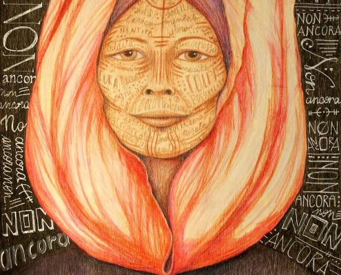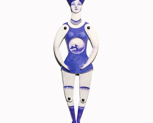 “Sono un’artista marginale e indipendente. Ho imparato a dipingere da piccolissima, in un centro anziani immerso tra le case popolari di Garbatella, in cui sono cresciuta. Il mio posizionamento transfemminista, ecologista e intersezionale è la sostanza e la materia di cui è fatta ogni opera che realizzo. Linea, colore, forma, tema sono attivismo e trasformazione. Studio e decostruzione. A volte sto davanti, a volte dietro. Da ciclista so che davanti posso fare scia per le altre persone e quando sono dietro posso ascoltare e riposarmi, ricrearmi, per un nuovo slancio o per arrivare dove non avrei mai immaginato, meravigliandomi. Non capisco perché le medaglie sono assegnate a chi taglia il traguardo e non a tutta la squadra, ma penso che lo scopriremo insieme. Sono scenografa, illustratrice, cartapestaia, grafica, scultrice, land e street artist, con la passione per le animazioni. Creativa e artigiana sociale. Ciclista antimachista.”