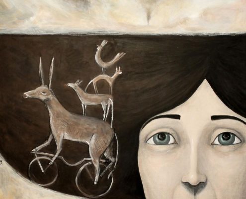 Lunàdigas è un’associazione di promozione sociale, con sedi operative a Cagliari e a Roma, fondata dalle autrici e registe Nicoletta Nesler e Marilisa Piga e attiva dal 2016, anno di produzione del docufilm “Lunàdigas ovvero delle donne senza figli”. A partire dal docufilm, nato da una raccolta di testimonianze a confronto con i temi della genitorialità e distribuito in numerose città e festival, Lunàdigas ha dato vita all’Archivio Vivo, il primo archivio audiovisivo di memoria orale dedicato al tema della genitorialità al di fuori di stereotipi, condizionamenti di genere, giudizi. Le testimonianze, in continuo aggiornamento e già raccolte in numerosi Paesi, sono consultabili liberamente online nella piattaforma dedicata lunadigas.com. Dal 2022, Lunàdigas promuove all’interno della sua galleria virtuale prendopArte i lavori e le parole di meravigliosə artistə. Così nasce la collaborazione con Marta Cavicchioni.