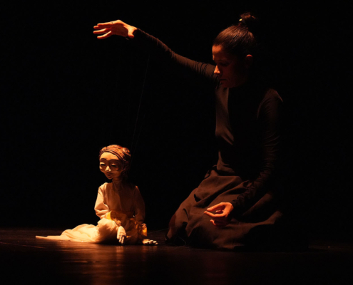 Marionette, danza contemporanea e poesia visiva per un pubblico di tutte le età. Corpi e oggetti prendono vita in un magico intreccio di fili, raccontando come, anche nelle difficoltà, possiamo ricostruire una comunità e sentire di vivere in una rete di fili e relazioni.