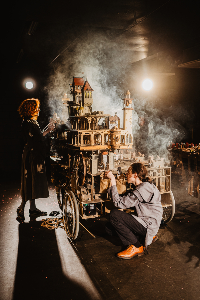 Tricktrek Theatre è un progetto familiare: Tricktrek sono Serafima, Alexander e Luka. La cifra distintiva della compagnia è l’uso di oggetti meccanici complessi e di ingegnosi dispositivi scenici. È un teatro in cui arte e ingegneria dialogano per dare vita a creazioni di grande impatto visivo. Attiva a livello internazionale, la compagnia è regolarmente in tournée e partecipa a festival in tutto il mondo.