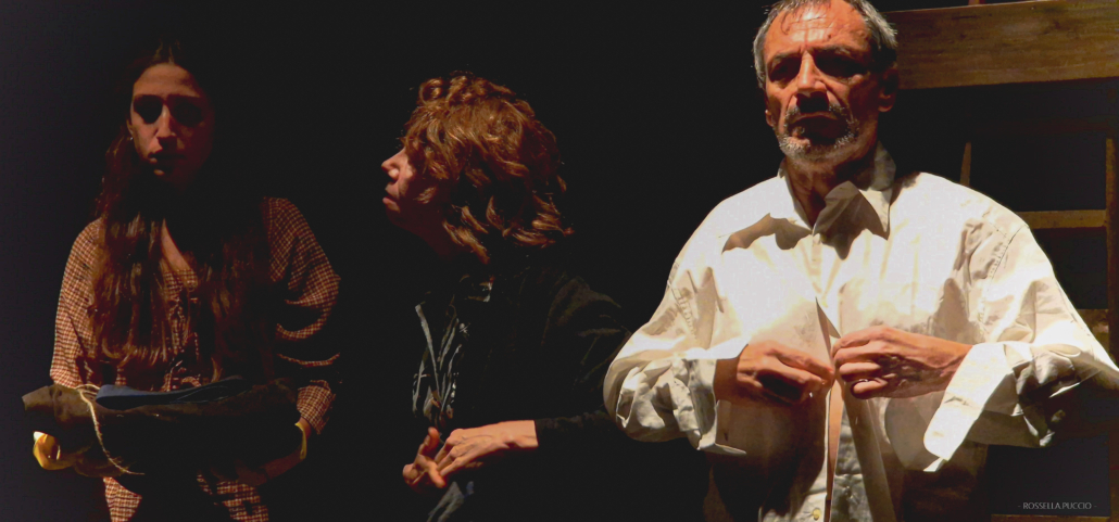 Borruso narra attraverso questo terzetto di personaggi pescati dalla periferia di una città dimenticata, lo smarrimento dell’arte stessa dinanzi al reale, la sua fatica a intercettare chi è soffocato dal bisogno. Stracci è un uomo svezzato dalle privazioni della vita, un ladruncolo, un fuorilegge e, insieme, un pagliaccio, sospeso fra candore e furbizia, fra un caotico desiderio di vita, di rivalsa e la malinconica incapacità di comprendere il mondo. Lena (interpretata da Valeria D’Aquila), persa in un dolore animale, si ravviva solo masticando quel panino tirato fuori dal “cestino” che Stracci le ha conservato e si abbandona inaspettatamente a sognare la magia del mondo dei film, mentre la figlia Vita (Alessandra Guagliardito), giovane ragazza fragile ed enigmatica, resta chiusa in un silenzio ostinato. Ma dove sono finiti tutti, dove s’è spostato il set? chiede disperatamente Stracci. Quando finalmente Lena gli rivelerà che egli è morto, eccolo rivivere le immagini della sua agonia. Ma cosa sono venute a fare sotto la croce Lena e Vita? Davvero giungerà la televisione per intervistarle? E Vita parlerà finalmente? Che si tratti di allucinazione o realtà, le due donne confesseranno ai presunti giornalisti giunti sul luogo della disgrazia i loro desideri, della loro vita di stenti e di abusi. E Stracci, cosa dirà a quelli che lo vogliono Santo, a quelli che lo chiamano eroe? Cosa dirà all’Angelo che finalmente gli indicherà la via verso il Regno dei Cieli? Non senza rilievo è la scelta dell’autore rispetto alla lingua dei suoi personaggi: un italiano corrotto dal siciliano, in cui la sintassi, certe concordanze inesatte e la presenza di vocaboli deformati e inventati tentano di restituire da un lato il sapore della lingua parlata, dall’altro di provocare un interessante cortocircuito. E cioè un certo “sforzo” dei personaggi alle prese con una lingua non propria. “Proprio questo spasmo mi interessava – dichiara l’autore – che tradisce il desiderio dei miei personaggi d’essere riconosciuti, compresi da un mondo a loro estraneo”. La Passione di Stracci chiude la quadrilogia di Gigi Borruso sulle marginalità umane e sociali, iniziata con “Luigi che sempre ti penza” (menzione speciale ai premi Tuttoteatro 2006, Museo Fratelli Cervi 2013 e finalista premio Betti nel 2008), “Un errore umano” (Premio Fersen per la drammaturgia, 2015) e “Fuori campo” (Premio Tuttoteatro Dante Cappelletti, 2009). Ed è anche il frutto dell’esperienza che l’autore ha compiuto in questi anni con il Museo Sociale Danisinni e con il Teatro Stabile di Palermo in progetti di teatro sociale, fondando e dirigendo il Laboratorio “DanisinniLab”, indirizzato alla ricerca d’un possibile dialogo con l’ambiente proletario e sottoproletario della città di Palermo.