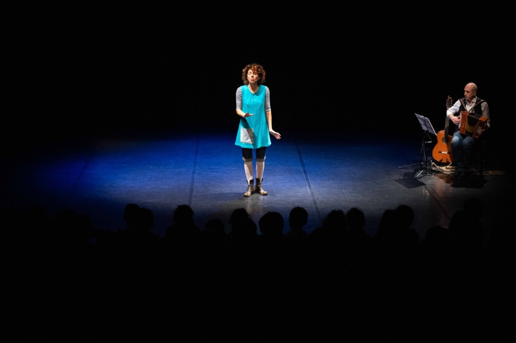 Il gioco drammaturgico a metà tra la narrazione e l’azione prevede il coinvolgimento del pubblico in alcuni momenti chiave insieme all’attrice e al musicista in una interazione a tratti esilarante.