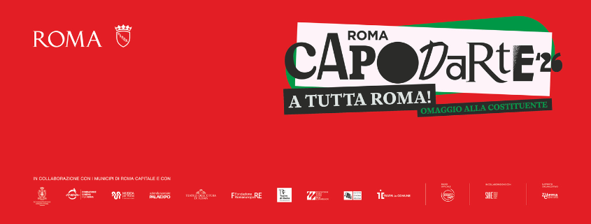 Le iniziative di ROMA CAPODARTE 2026 A tutta Roma! Omaggio alla Costituente sono promosse da Roma Capitale, Assessorato alla Cultura e al Coordinamento delle iniziative riconducibili alla Giornata della Memoria e con la collaborazione dell’Assessorato alle Attività Produttive, alle Pari Opportunità e all’Attrazione investimenti, con il coordinamento del Dipartimento Attività Culturali, in collaborazione con i Municipi, l’Istituzione Biblioteche di Roma, la Sovrintendenza Capitolina ai Beni Culturali, le istituzioni del Tavolo tecnico per la produzione culturale contemporanea – Accademia Nazionale di Santa Cecilia, Fondazione Cinema per Roma, Fondazione Musica per Roma, Azienda Speciale Palaexpo, Teatro dell’Opera di Roma, Fondazione Romaeuropa, Fondazione Teatro di Roma – Teatro Nazionale – e ancora TiC – Teatri in Comune e Nuovo Cinema Aquila; e inoltre, Fondazione Roma Lazio Film Commission, Banda Musicale del Corpo di Polizia Locale di Roma Capitale, EUR SpA, associazioni, operatrici e operatori culturali, artiste e artisti. Con il supporto organizzativo di Zètema Progetto Cultura e la collaborazione di SIAE. Radio ufficiale Dimensione Suono Soft. L’identità visiva di Roma Capodarte 2026 è realizzata da Testi Manifesti.