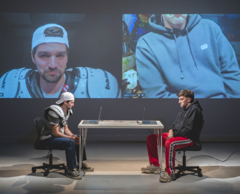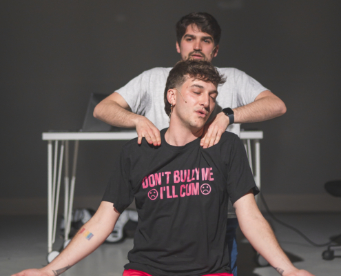 Il regista e attore Pietro Angelini incontra Pietro Turano (attore, autore e attivista, tra i protagonisti di SKAM Italia) in Several Love’s Requests, un’indagine performativa sul desiderio maschile nata dall’attraversamento delle videochat online. Slanci, sfoghi, paure e segreti confidati a mezza bocca fra estranei, tradiscono le svariate richieste d’amore da cui emerge l’incosciente bisogno di uno spazio di confronto intimo tra maschi.