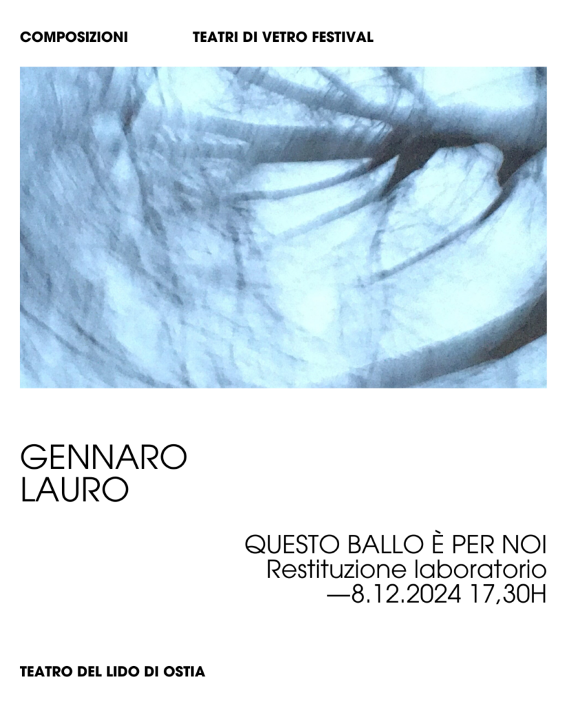Sono aperte le iscrizioni per il laboratorio condotto da Gennaro Lauro che si terrà dal 2 all’8 dicembre al Teatro del Lido di Ostia nell’ambito di Composizioni_Teatri di Vetro 18 direzione artistica Roberta Nicolai.