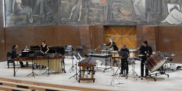 Pensate a quelle superbe ed eterne melodie che sono ormai scolpite nella nostra memoria sonora, i temi di Rossini, Bartok, Khachaturian, Bach, Mozart, Tchaikovsky… ma, lì dove vi aspettate i flauti, trovate campanelli, dove s’imponevano le trombe, irrompono barattoli, dove i violini cantavano impetuosi si presentano xilofoni e marimbe, dove il pianoforte suggeriva accordi e accompagnamenti struggenti, si distende il suono di vibrafoni che si alternano a timpani e tamburi.